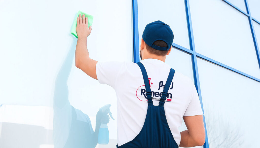 Keeping your glass surfaces spotless isn’t just about aesthetics—it reflects your brand’s attention to detail and hygiene. At Raneem, we specialize in professional glass and facade cleaning services that restore clarity and shine to every pane, inside and out. From multi-story facades to office partitions and large showroom displays, our skilled team uses advanced techniques to remove dirt, hard water spots, and stubborn stains, giving your property a polished, impressive look.